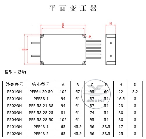 平板高壓變壓器 P601GH